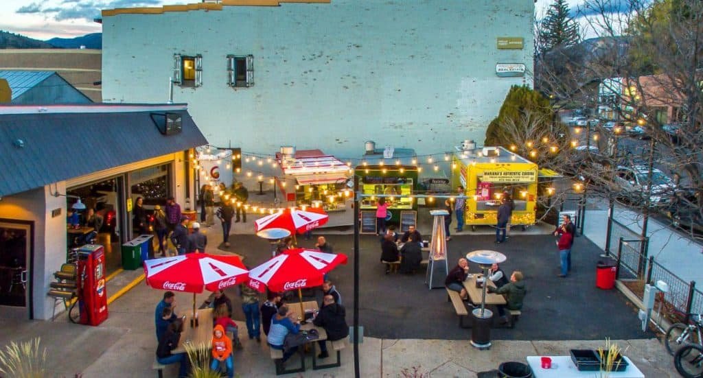 Set in a historic filling station building at Main & 11th, 11th Street Station is a vibrant culinary hub in downtown Durango—a gathering spot that combines a lively bar, coffee shop, and a rotating lineup of locally owned food trucks. From wood-fired pizzas and gourmet sliders to smoothies, tacos, and juices, there’s something for every craving. With dog-friendly outdoor seating, live music, and a community-focused vibe, it’s a perfect place to mingle, nibble, and soak up Durango’s local culture.